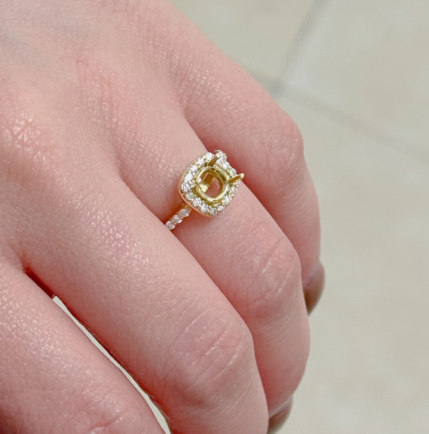 18K Yellow Gold Diamond Halo Engagement Ring Setting