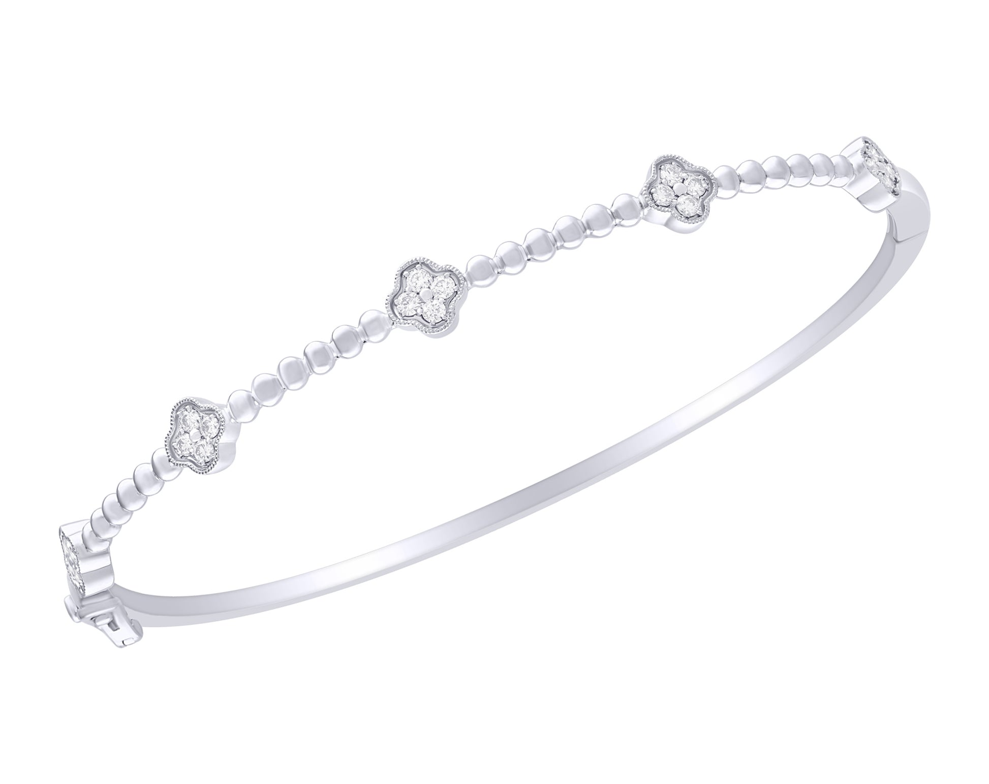 Beaded Station Diamond Clover Gold Bangle Bracelet