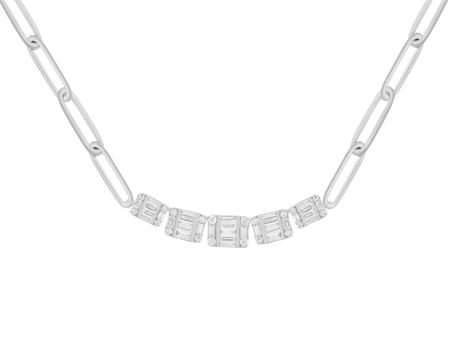 ✨ 14K Gold Diamond Mosaic Baguette Bar Paperclip Necklace — Yellow or White Gold