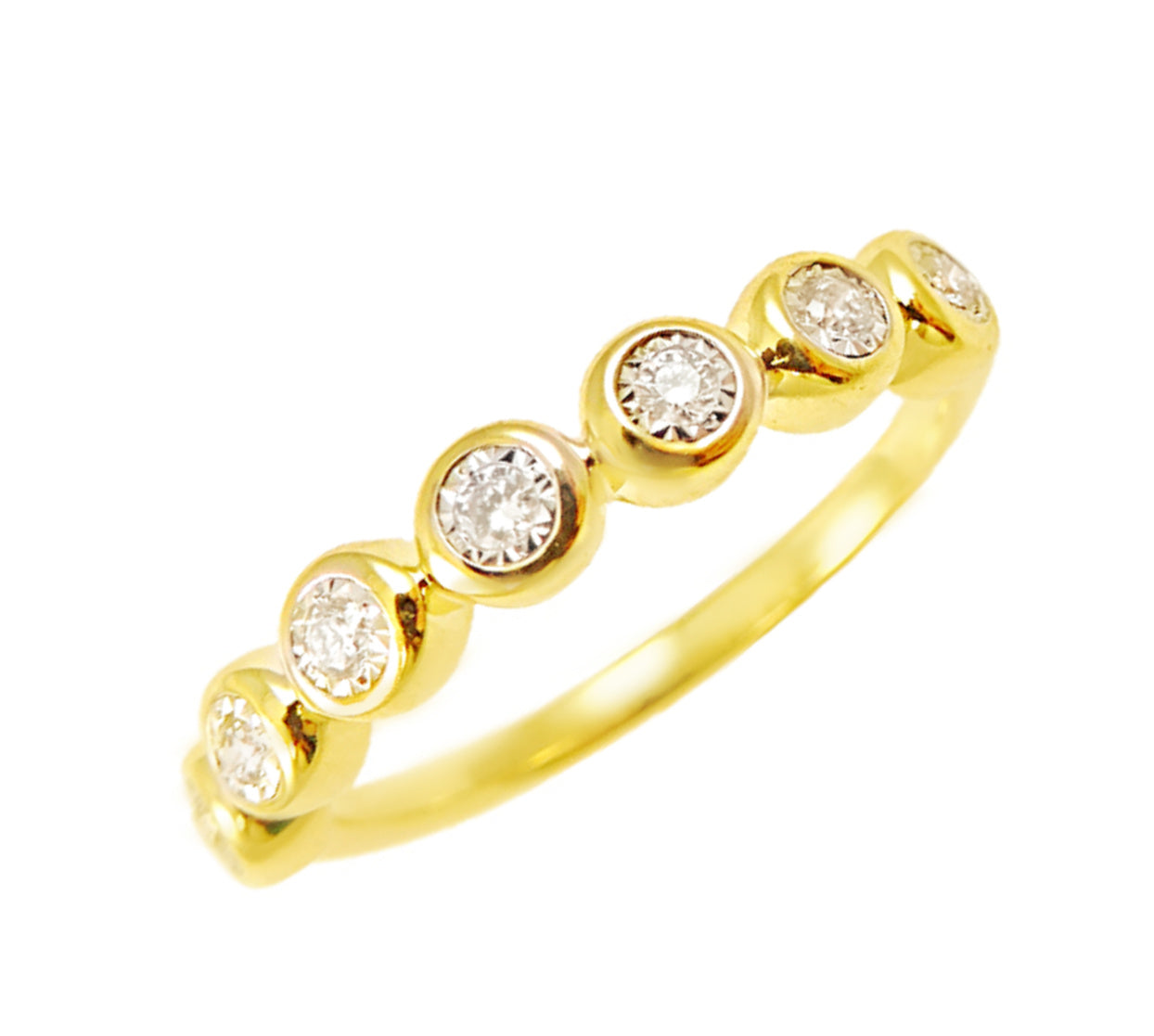 Indulge in glamour with our collection of gorgeous diamond rings, designed to be worn solo or stacked for an exquisite look. Crafted in solid 14 karat gold, each ring features a total weight of 0.10cts in diamonds, delicately set within a shimmering backdrop of gold for maximum impact. Available in your choice of 14 karat white, yellow, or rose gold, these rings offer versatility and elegance to suit any style. Plus, we offer complimentary sizing for the perfect fit—simply contact us and we'll take care of the rest. Elevate your jewelry collection with these affordable yet luxurious rings, guaranteed to add a touch of sparkle to your everyday ensemble.