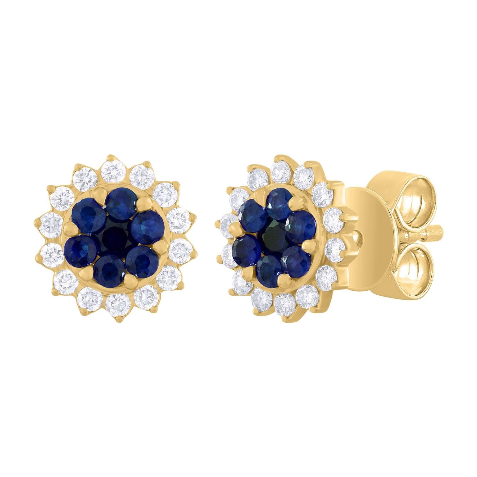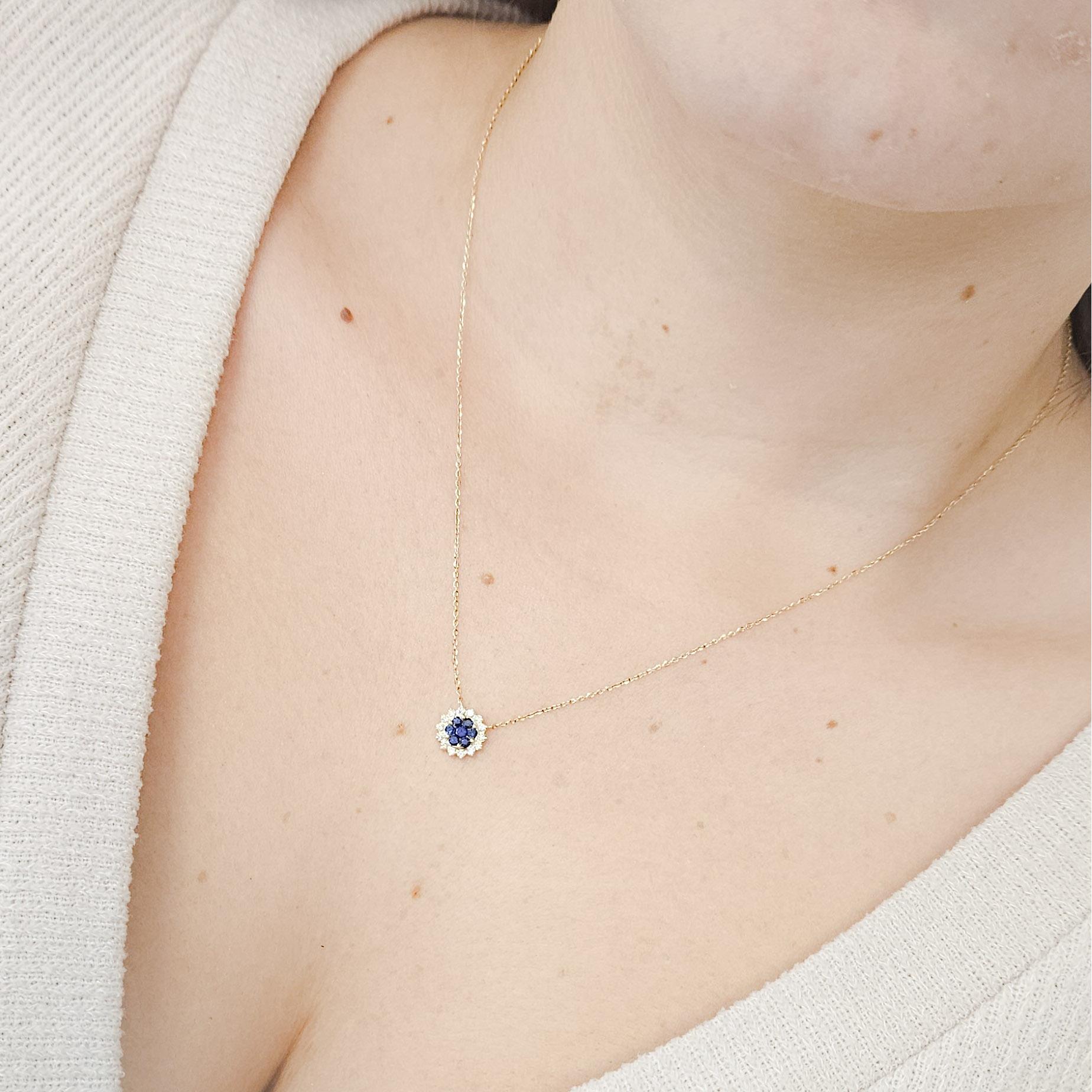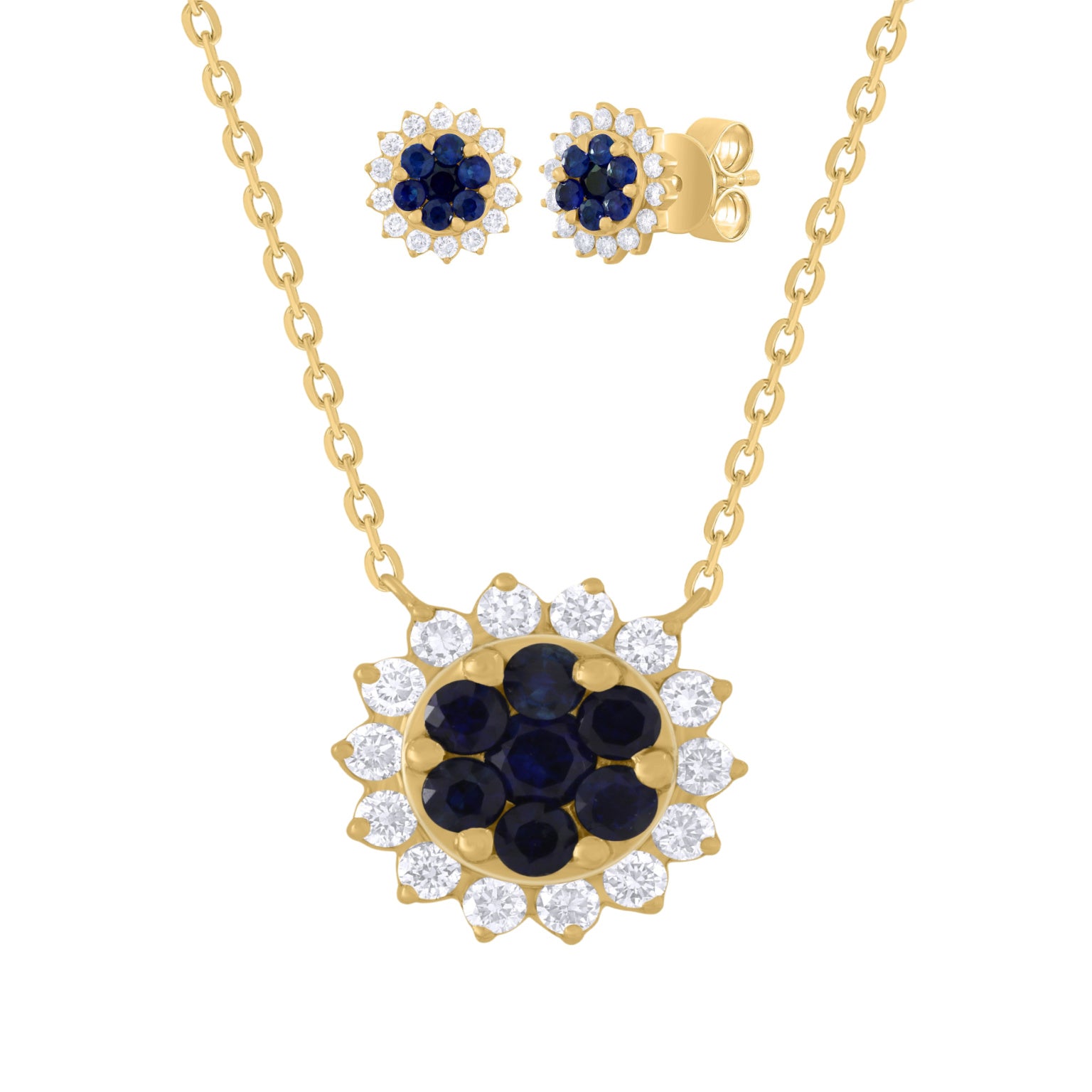 This 14K gold flower gift set is blooming with beauty and sparkle! Crafted with a diamond and blue sapphire cluster center, this set comes with an earring and necklace, the perfect gift for an unforgettable present. Look no further for a stunning, one-of-a-kind gift!