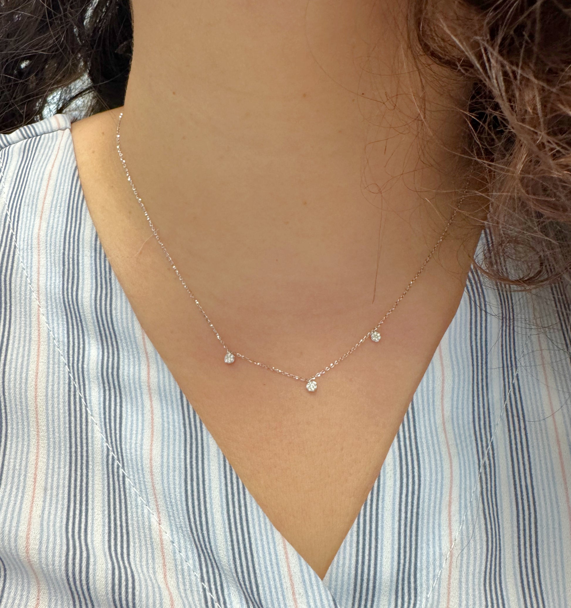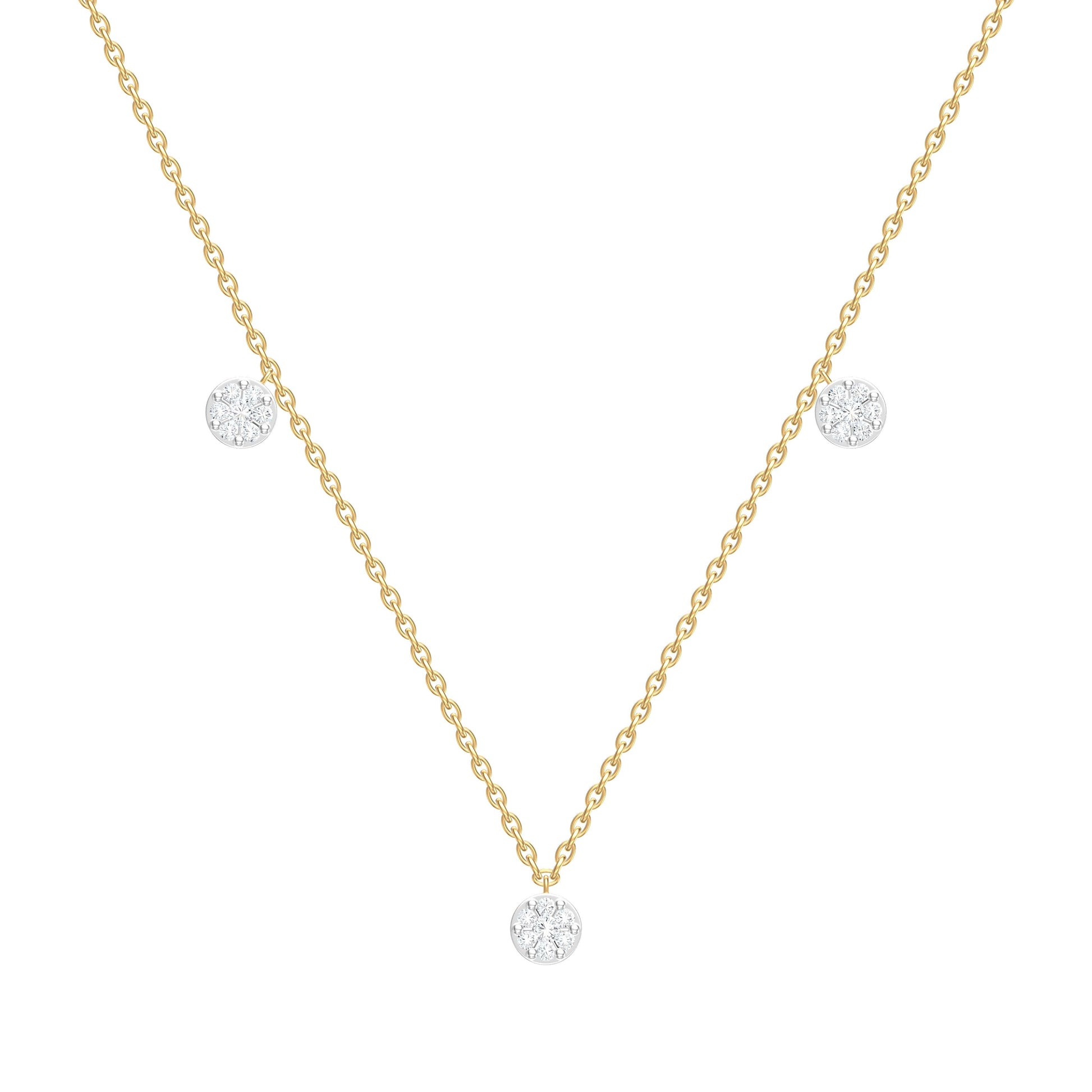 Refine your everyday look with the understated luxury of our Gold Three Rondel Diamond Necklace. Crafted in solid 14K gold, this sleek design features three petite diamond rondels totaling 0.10 carats, offering just the right touch of sparkle from every angle. Its adjustable 18"/16" length allows you to style it your way — whether worn solo for a minimalist statement or layered effortlessly with your favorite chains.