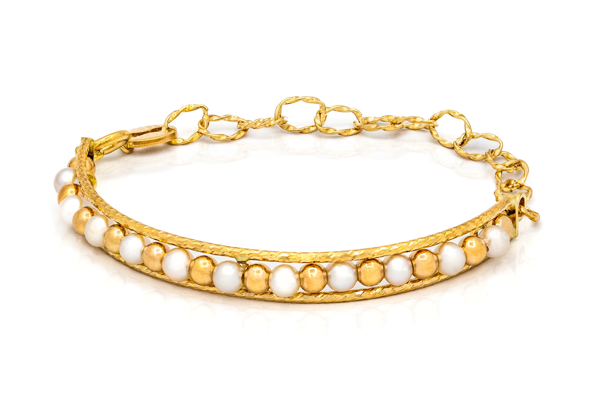 Add a touch of elegance and charm to your little one's wrist with our Half Bangle Gemstones Baby Bracelet. Handcrafted with 14KY gold, this half bangle bracelet features lustrous pearls or vibrant turquoise, adding a delicate yet sophisticated touch. Choose from pearl, turquoise, or a combination of both for a truly unique and luxurious piece.