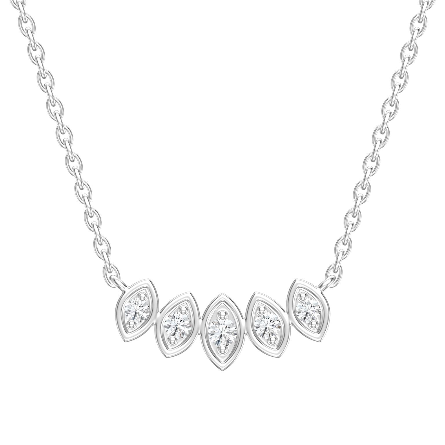 Elevate your everyday elegance with our 14K Yellow Gold Whisper Diamond Pave Marquise Necklace, a delicate and refined piece designed to shimmer with effortless beauty. This dainty curved bar pendant features a row of marquise-shaped bezels, each adorned with sparkling natural diamonds that create a soft, radiant glow across the neckline.