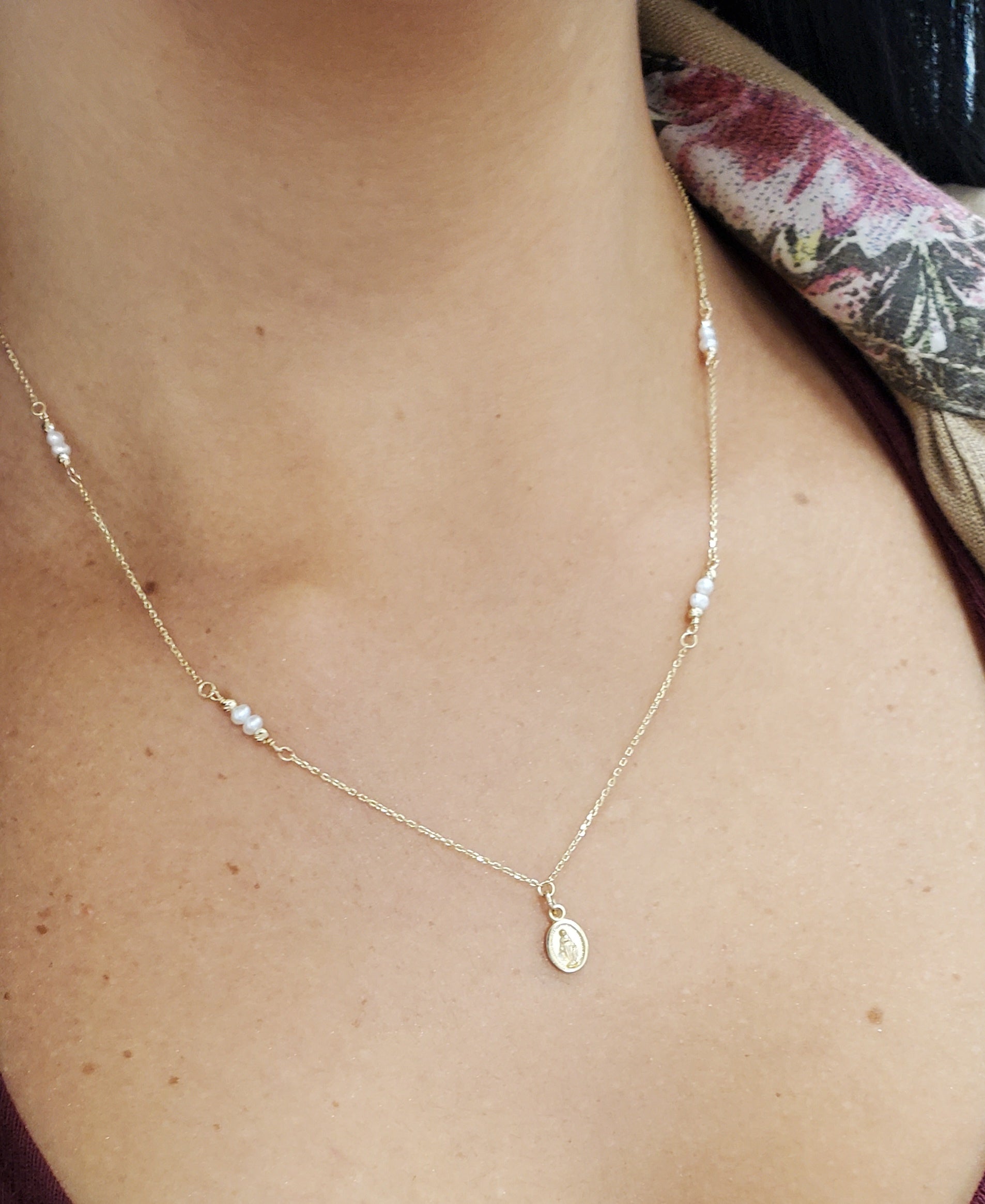 Mini Miraculous Medal Necklace with Pearl y Bead Stations
