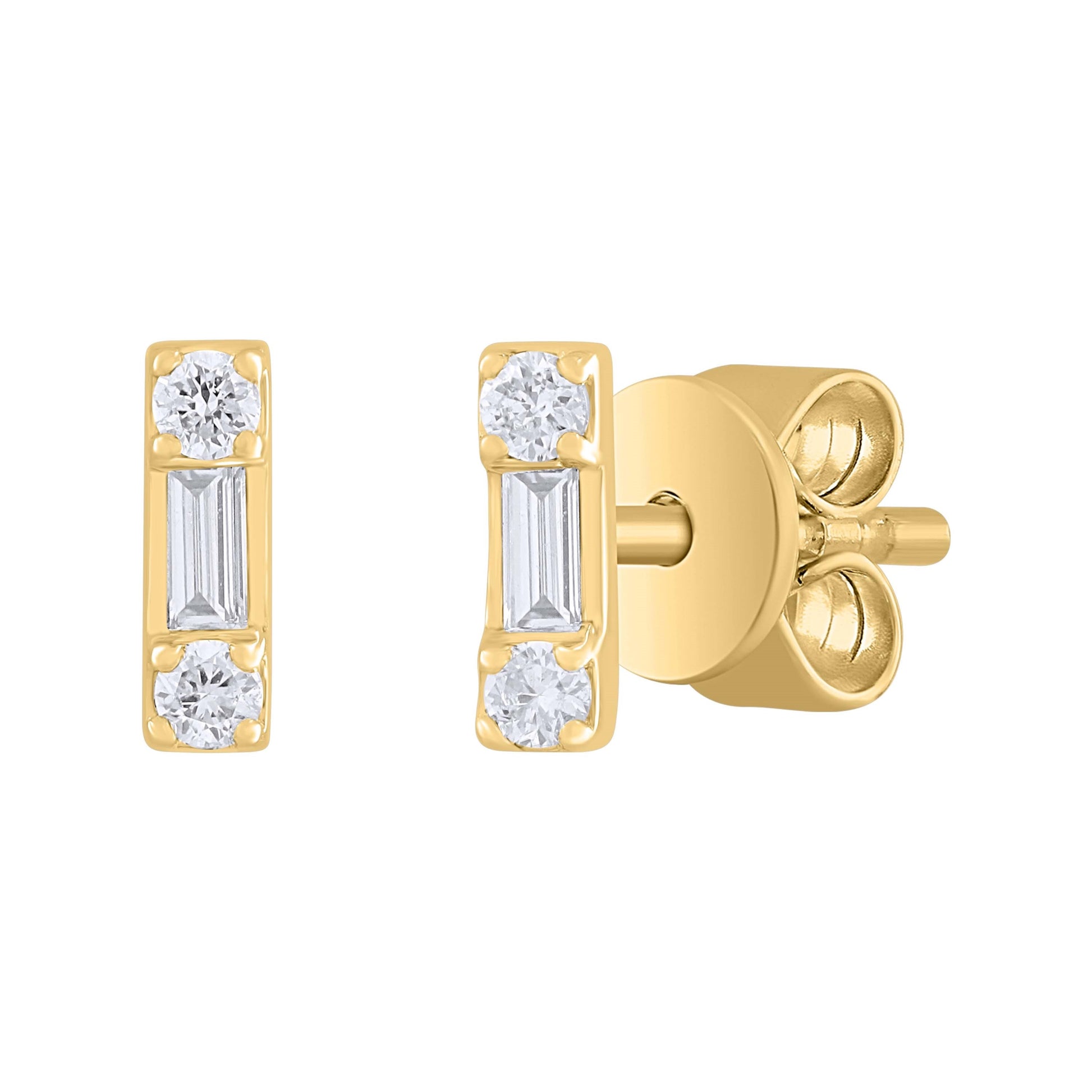 Adorable Miniature Diamond Baguette Earring crafted in 14KY Gold. The earring measures 6x2mm and has 0.12cts total weight total weight in diamonds.