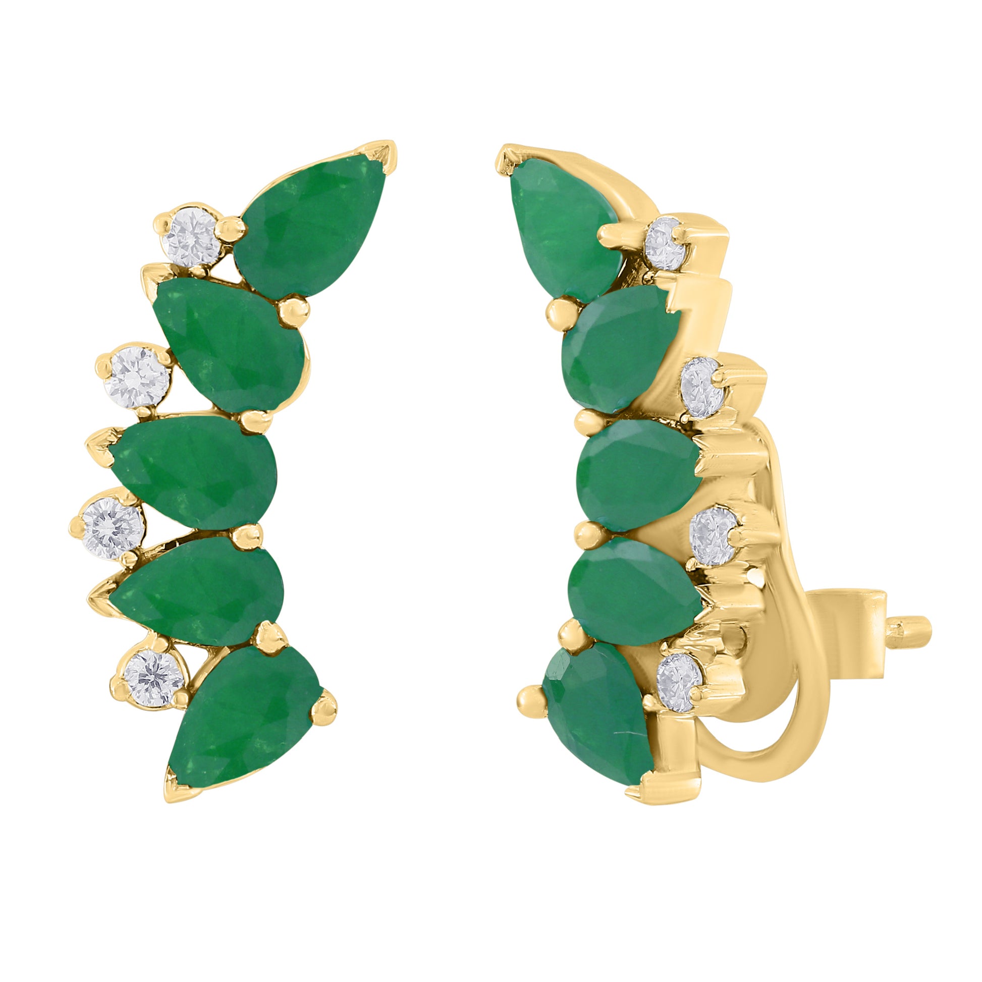 Elevate your style with these exquisite Color Stone Pear Shape and Diamond Crawler Earrings in 14 Karat Gold. The design features captivating pear-shaped color stones, consisting of vibrant Ruby, Emerald or Blue Sapphire of 2.75cts, elegantly perched at the base of each earring. The vibrant color stones, with their lustrous cut, serve as the centerpieces, radiating sophistication and charm.  Adorning the curve of the ear, the crawler design creates a sleek and modern silhouette, enhancing your natural beauty with an understated touch of glamour. Delicate diamonds of 0.15ct are meticulously set along the contour of the earring, adding a touch of sparkle that beautifully contrasts with the rich hue of the color stones.  Perfect for both formal occasions and everyday elegance, these earrings offer a unique blend of classic and contemporary style. Their versatile design ensures they can seamlessly transition from day to night, making them a cherished addition to any jewelry collection. Whether you’re dressing up for a special event or adding a hint of luxury to your daily wear, these Color Stone Pear Shape and Diamond Crawler Earrings are sure to make a dazzling impression.
