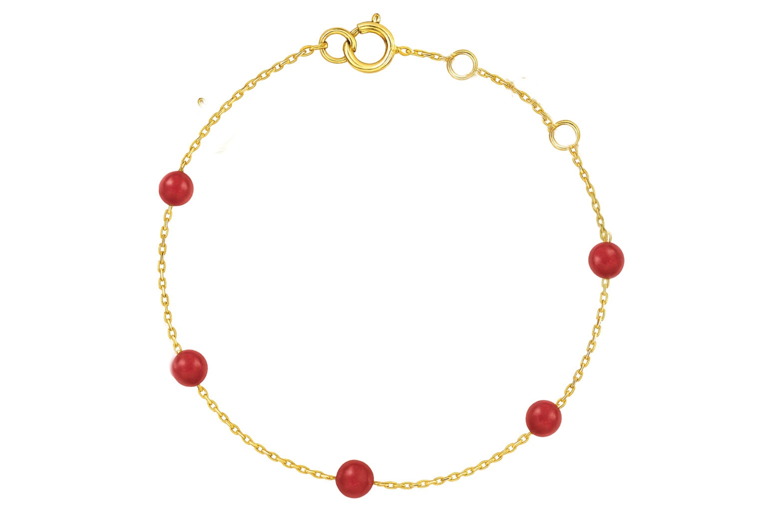Experience elegance and style with the Station Color Stone Bead Bracelet (3.0mm). This beautifully crafted 14k gold piece comes in pearl, turquoise, coral, or a combination of pearl and turquoise. With a length of 6.5" inches with jump rings at 6" and 5 1/2" inches to adjust the length, it's perfect for any occasion and guaranteed to make a statement. The thin 1.0mm cable chain is adorned with stationed beads measuring 3.0mm in diameter. Don't miss out on this charming accessory!  Please note, this bracelet is meant for a child or someone with small wrists.