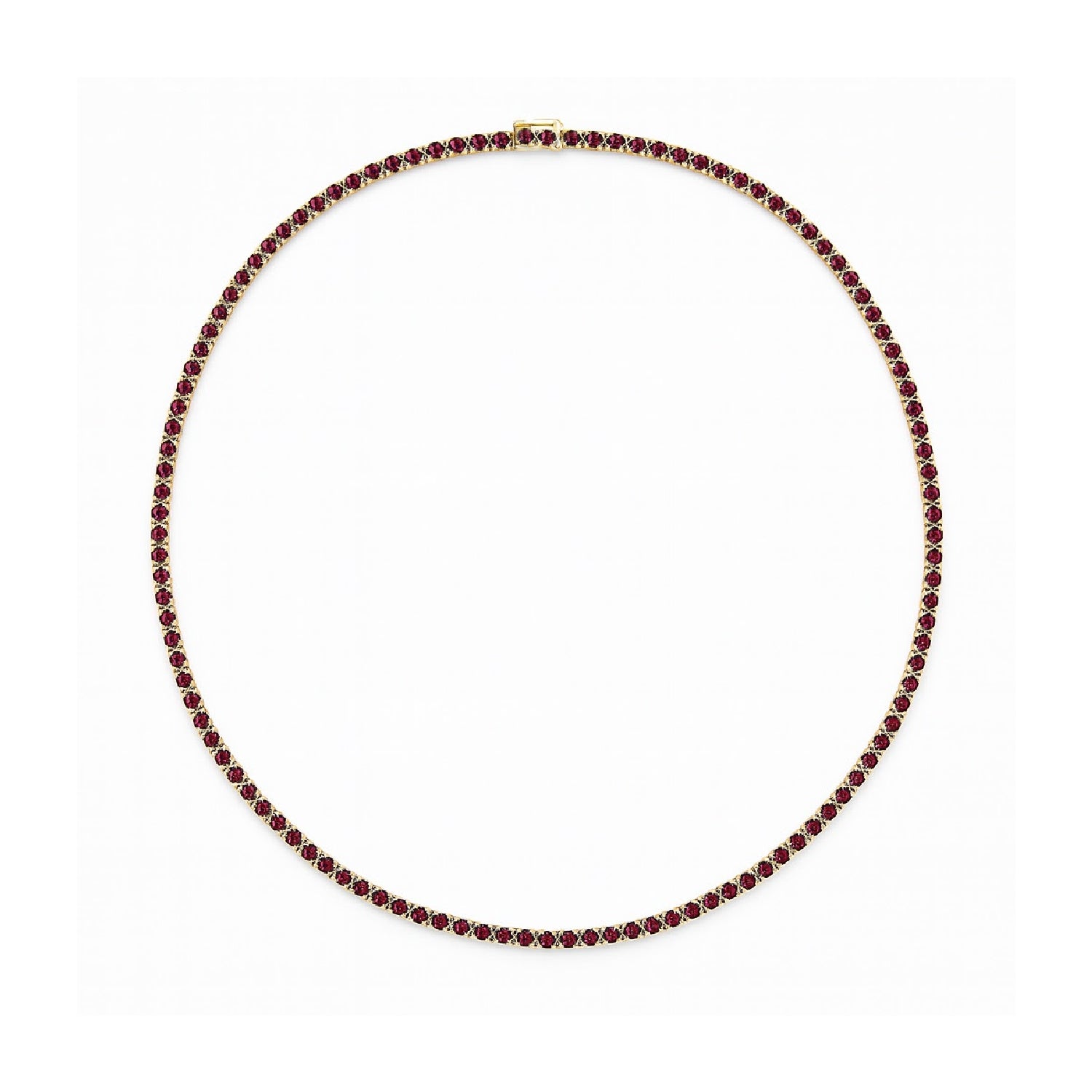 Elevate your jewelry collection with this exquisite 14K Yellow Gold Straight-Line Color Stone Tennis Necklace, designed for effortless luxury and everyday glamour. Set with vibrant natural AAA-quality gemstones—your choice of Ruby, Blue Sapphire, or Emerald—this refined piece delivers a captivating pop of color with a total weight of 6.30 carats. Its sleek 3.0mm silhouette lays gracefully along the neckline for a classic, streamlined look.